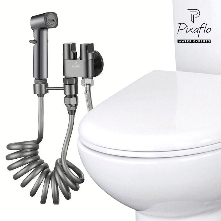 Perfect for bathrooms, toilets, and wash basins, the Pixaflo 2-in-1 Angle Valve with Health Faucet Set is built for long-lasting performance, hygiene, and modern style.